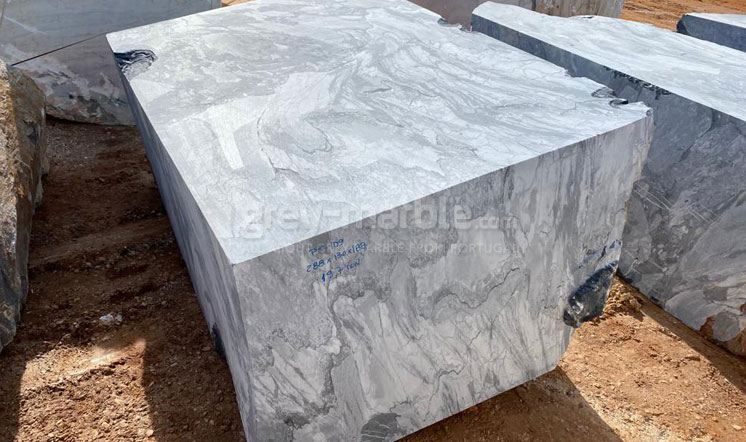 Light grey colored marble blocks, type Ruivina Light. Here, we see the usual pattern and light grey color of this Ruivina Light selection.